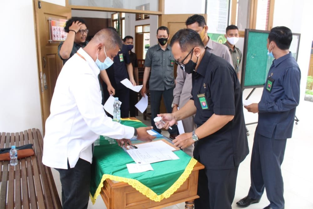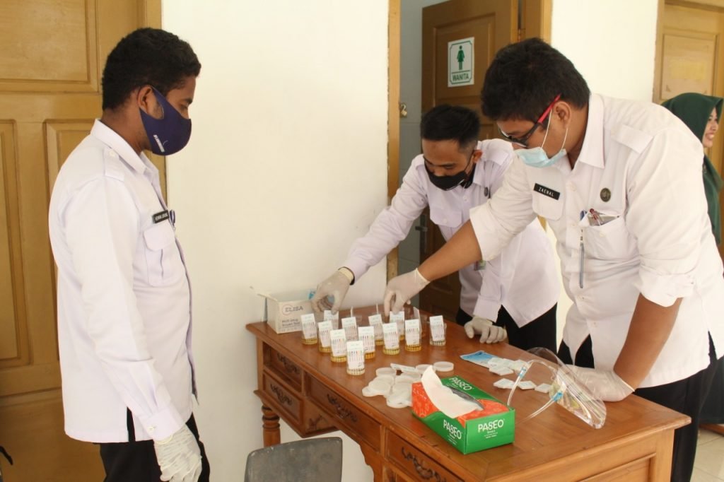 NUNUKAN – Sebagai wujud implementasi Inpres Nomor 2 tahun 2020 tentang Rencana Aksi Nasional P4GN, Pengadilan Negeri Nunukan bekerjasama dengan Badan Narkotika Nasional (BNN) Kabupaten Nunukan menyelenggarakan kegiatan deteksi dini narkoba melalui tes urine. Kegiatan dilaksanakan di ruang sidang utama Pengadilan Negeri Kabupaten Nunukan, Senin (16/11/2020).