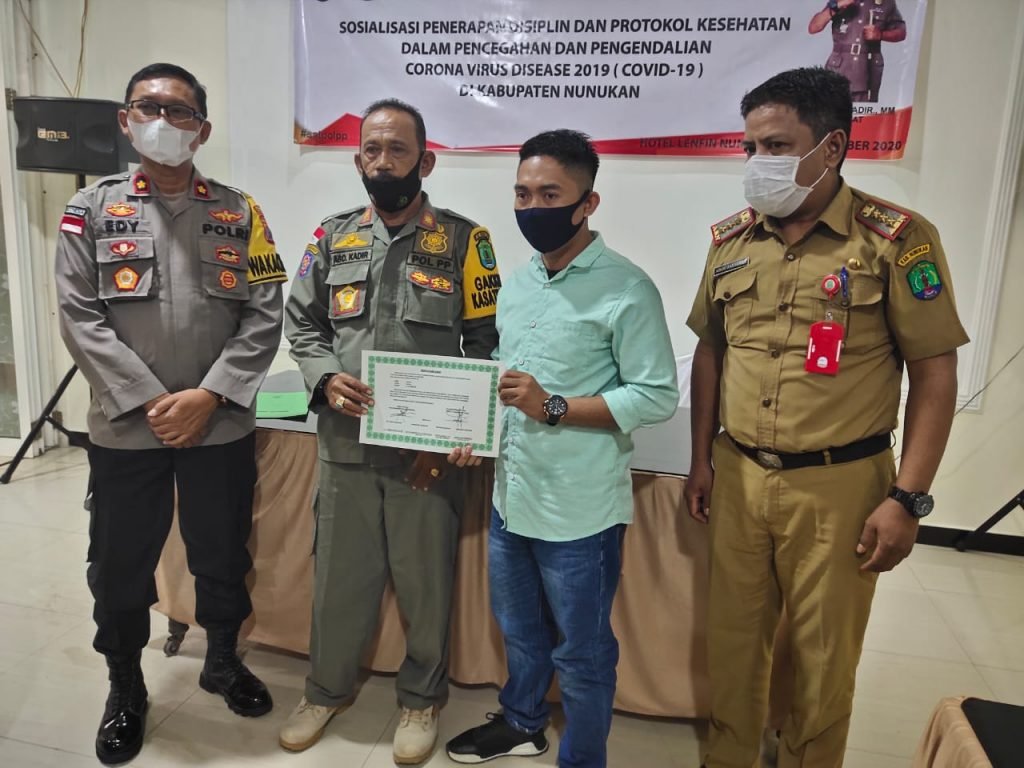 Dalam acara itu juga dihadiri Plt Bupati Nunukan Ir. H. Faridil Murad yang diwakili Staf Ahli SDM dan Kesra Pemerintah Kabupaten Nunukan, Abdi Jauhari, sekaligus membuka acara Sosialisasi Penerapan Disiplin dan Protokol Kesehatan terhadap pelaku usaha kafe dan tempat hiburan. Serta penandatanganan peryataan sikap oleh pemilik kafe dan THM.