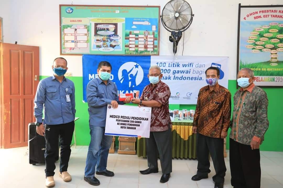 TARAKAN – Bentuk kepedulian dalam proses belajar mengajar daring atau Pembelajaran Jarak Jauh (PJJ). PT. Medco E&P Kota Tarakan dan Medco Foundation dengan Program Medco Peduli Pendidikan menyerahkan bantuan 200 unit handphone kepada Pemerintah Kota (Pemkot) Tarakan melalui Dinas Pendidikan Kota Tarakan.