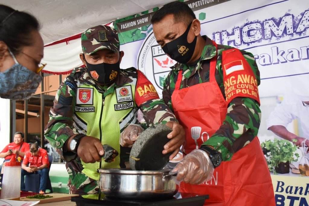 TARAKAN – Lomba memasak yang digelar di halaman Hotel Royal Crown diikuti beberapa perwakilan instansi termasuk Kodim 0907/Trk yang diwakili Danramil Tarakan Barat Kapten Inf Pattah Setiawan, Selasa (15/12/2020).