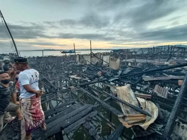 NUNUKAN – Kebakaran di Dermaga Pasar Inhutani, RT 10, Kelurahan Nunukan Utara, yang menghanguskan sebanyak 57 rumah, ditambah pos polisi Inhutani, perikanan, Perhubungan, Imigrasi dan Beacukai sebanyak 5 bangunan, sehingga total 62 bangunan. Sedangkan korban yang mengungsi sekitar 227 orang.