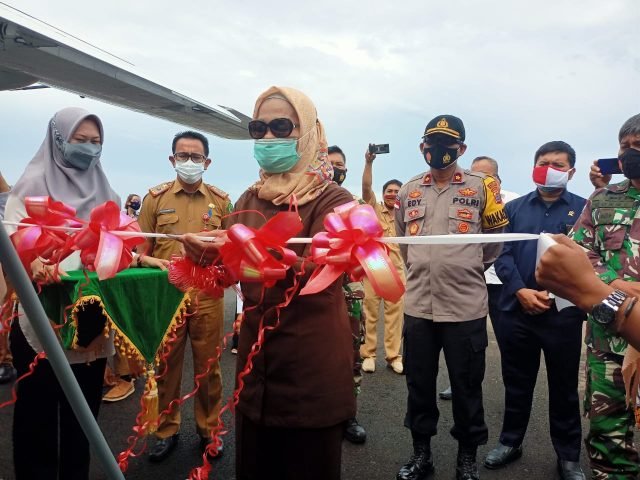 Kegiatan launching digelar di halaman Bandara Apron dengan prosesi gunting pita, yang dilakukan Ketua DPRD Nunukan Hj. Rahma Leppa, sebagai tanda penerbangan SOA penumpang tahun 2021 diluncurkan.