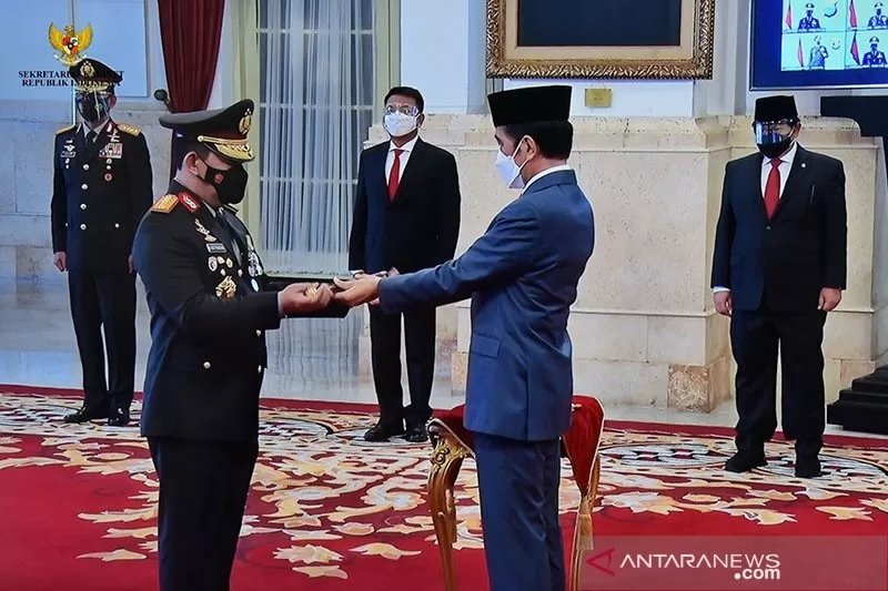 Pelantikan tersebut berdasarkan Keputusan Presiden Nomor 5 Tahun 2021 tentang Pengangkatan Kepala Kepolisian Republik Indonesia. Listyo juga menjalani upacara kenaikan pangkat menjadi jenderal bintang empat. Presiden Jokowi menyematkan langsung pangkat jenderal serta menyerahkan tongkat komando Kapolri ke Listyo.(ant)