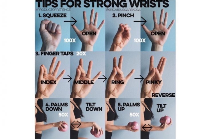 Ambil bola atau buah bulat dan genggam di tangan Anda. Kemudian hadapkan tangan ke arah bawah lalu turunkan sedikit. Lakukan ini 50 kali.