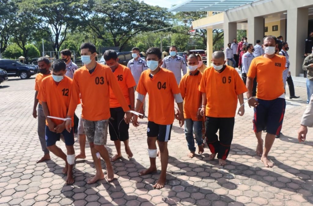 BANDA ACEH – Kepolisian Daerah Aceh, Kamis (11/02/2021) menggelar konferensi pers terkait pengungkapan narkotika jenis sabu seberat 353 Kg jaringan internasional dan dipimpin langsung oleh Kapolda Aceh Irjen Pol Drs. Wahyu Widada, M. Phil di Aula Serba Guna Mapolda Aceh.