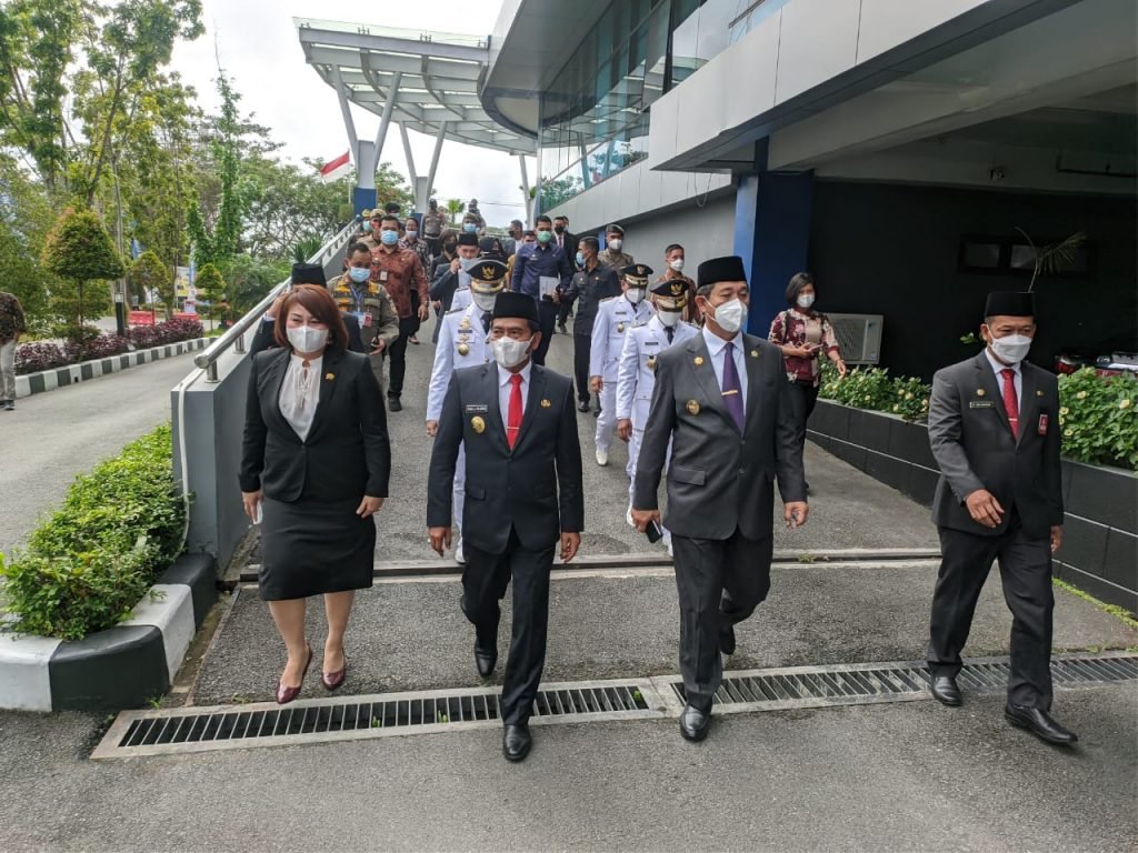TANJUNG SELOR – Gubernur dan Wakil Gubernur Kalimantan Utara (Kaltara), Drs. H. Zainal A Paliwang, SH,M.Hum dan Dr. Yansen TP, M.Si memimpin langkah Ibrahim Ali-Hendrik dan Syarwani-Ingkong usai menerima SK sebagai Bupati terpilih untuk dilantik.