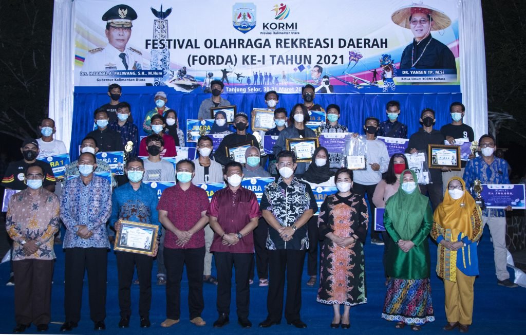 TANJUNG SELOR – Wakil Gubernur (Wagub) Kalimantan Utara (Kaltara), Dr. Yansen TP M.Si selaku Ketua Komite Olahraga Rekreasi Masyarakat Indonesia (KORMI) Kaltara menutup acara Festival Olahraga Rekreasi Daerah (FORDA) Kaltara kesatu, Rabu (31/3/2021). Mewakili Gubernur Kalimantan Utara, Wagub Yansen menutup acara tersebut di panggung yang terletak di Tugu Cinta Damai, Tanjung Selor.
