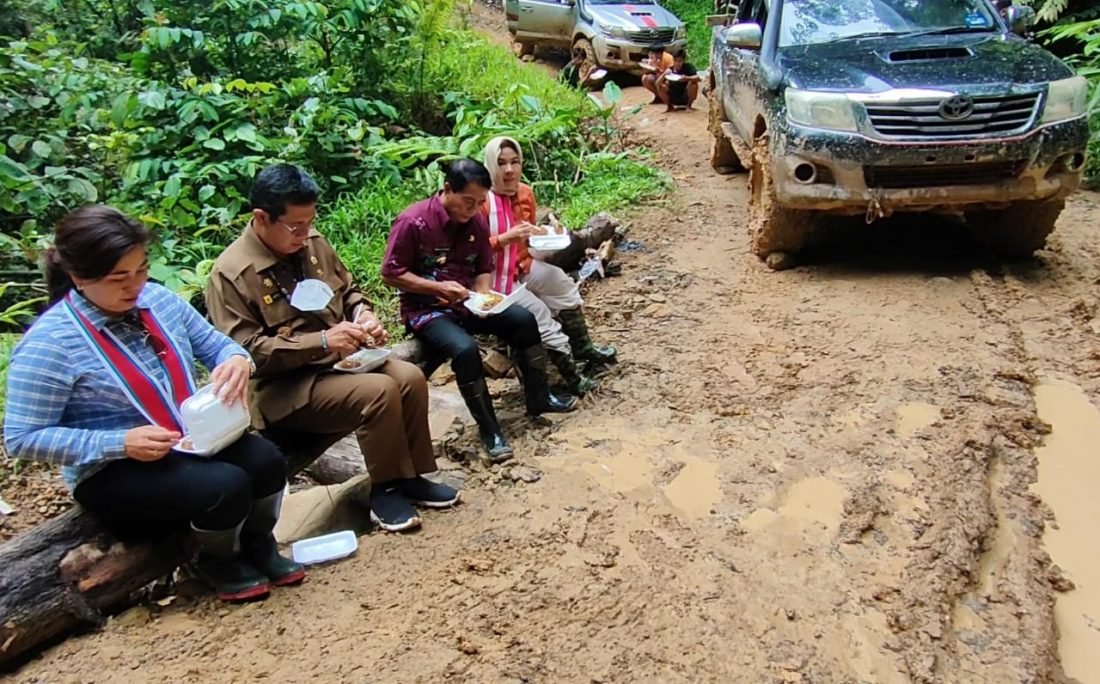 Kamis (8/4/2021) rombongan Kunker tiba di Desa Binuang, Kecamatan Krayan Tengah, setelah melalui perjalanan yang melelahkan. Kondisi jalan yang rusak parah mengharuskan rombongan berhenti beberapa kali untuk sedikit memperbaiki jalan, sehingga bisa dilalui.