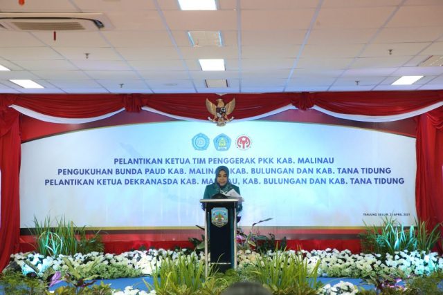 TANJUNG SELOR – Ketua Tim Penggerak Pembinaan Kesejahteraan Keluarga (TP PKK) Provinsi Kalimantan Utara (Kaltara), Hj. Rachmawati Zainal SH lantik Maylenty Wempi sebagai Ketua TP PKK Kabupaten Malinau usai melantik tiga Ketua Dewan Kerajinan Nasional Daerah (Dekranasda) dari tiga kabupaten di Kaltara.
