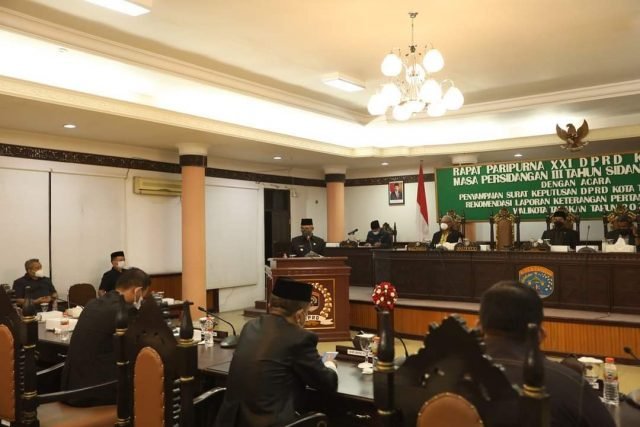 TARAKAN – Walikota Tarakan, dr. H. Khairul, M.Kes., bersama dengan Wawali, Effendhi Djuprianto, hadir dalam Rapat Paripurna DPRD Kota Tarakan dengan agenda penyampaian Surat Keputusan DPRD Kota Tarakan tentang Rekomendasi Laporan Keterangan Pertanggungjawaban Walikota tahun 2020 di Ruang Rapat Utama DPRD Kota Tarakan pada Senin (27/4/2021) malam.
