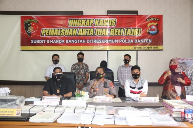 Di tempat yang sama, Kasubdit II Harda Bangtah Ditreskrimum Polda Banten AKBP Dedy Darmawansyah menjelaskan bahwa barang bukti berupa Akta Jual Beli dan Akta Hibah yang dipalsukan tersangka sebanyak 690 akta.