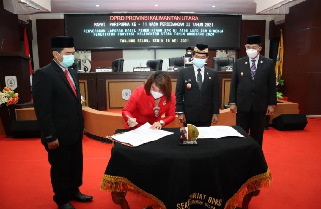 Hal itu disampaikan dalam rapat paripurna DPRD Kaltara dalam agenda Penyampaian Laporan Hasil Pemeriksaan BPK RI Tahun Anggaran 2020 yang disampaikan oleh Gubernur Kaltara, Drs. H. Zainal Arifin Paliwang SH M.Hum.