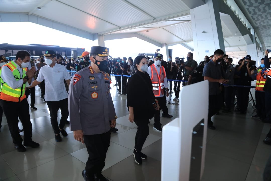 Hal itu disampaikan Kapolri saat meninjau arus mudik di Bandara Soetta, Tangerang, Rabu (12/5/2021) bersama Ketua DPR RI Puan Maharani, Panglima TNI Marsekal Hadi Tjahjanto, Menhub Budi Karya Sumadi, Menkes Budi Gunadi Sadikin, dan Kepala BNPB Doni Monardo.