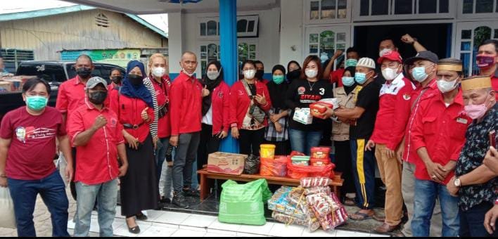 Segenap DPD PDIP Kaltara, DPC PDIP Kota Tarakan dan Staf Ahli anggota DPR RI Fraksi PDI Perjuangan, Deddy Sitorus menyerahkan bantuan logistik kepada warga yang terdampak.