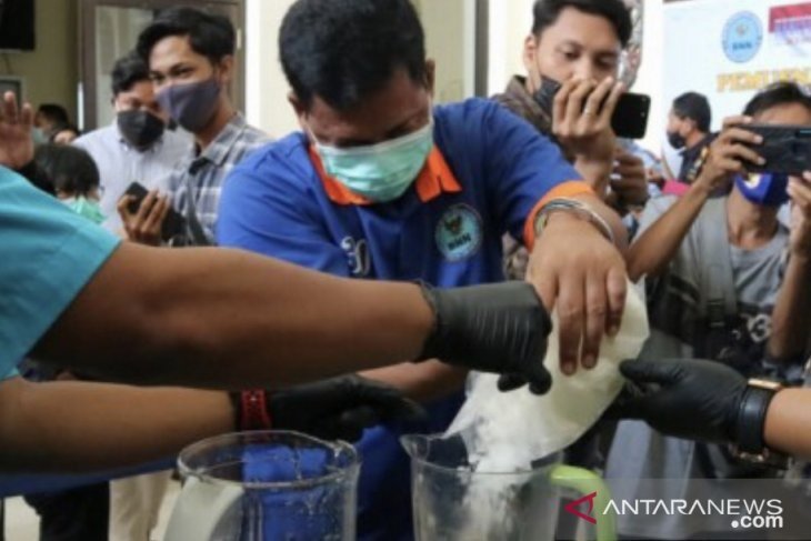 Barang haram diperkirakan bernilai miliaran rupiah tersebut dimusnahkan oleh petugas BNN Kaltim dicampurkan dengan air kemudian dimasukkan ke dalam blender.