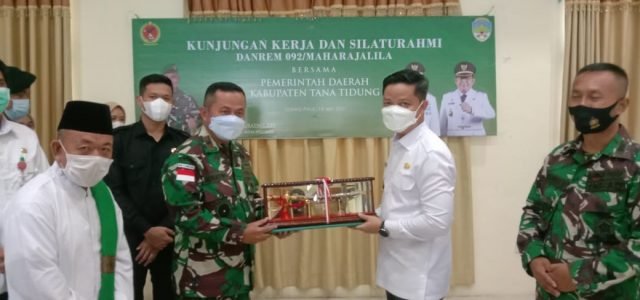 TANA TIDUNG – Komandan Korem 092/Maharajalila Brigjen TNI Suratno S.IP beserta rombongan melakukan kunjungan kerja dan silaturahmi ke Kabupaten Tana Tidung (KTT), Rabu 19 Mei 2021.