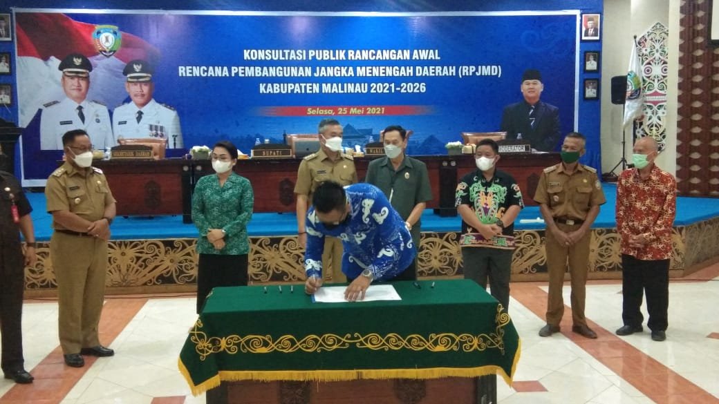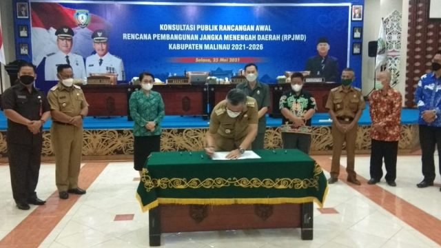 MALINAU – Secara tatap muka dan virtual, Bupati Malinau Wempi W. Mawa, S.E, membuka kegiatan Konsultasi Publik Rancangan Awal Rencana Pembangunan Jangka Menengah Daerah (RPJMD) Tahun 2021-2026, yang dilaksanakan di ruang Tebengang, Kantor Bupati Malinau, Rabu 26 Mei 2021.