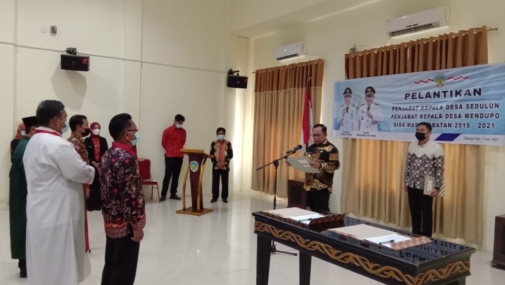 TANA TIDUNG – Wakil Bupati (Wabup) Tana Tidung, Hendrik melantik dua penjabat (Pj) Kepala Desa (Kades), yaitu Pj. Kades Sedulun Kecamatan Sesayap dan Pj. Kades Mendupo Kecamatan Betayau, yang diselenggarakan di Ruang rapat Wakil Bupati Tana Tidung, Kamis, 3 Juni 2021 Siang.