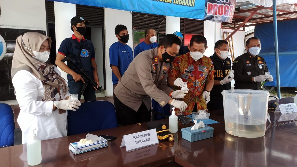 TARAKAN – Tim Berantas Badan Narkotika Nasional Provinsi (BNNP) Kaltara bersinergi dengan Tim Tindak Bea Cukai Tarakan berhasil menggagalkan peredaran gelap narkotika jenis sabu seberat 332,66 gram di daratan Tarakan pada 28 April 2021.