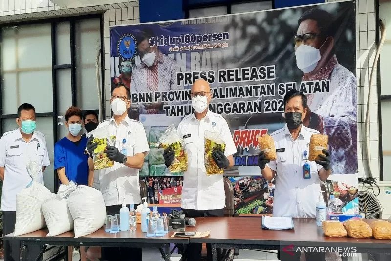 Banjarmasin – Badan Narkotika Nasional Provinsi (BNNP) Kalimantan Selatan mengungkap peredaran sebanyak 8.213 gram atau lebih kurang 8 kilogram lebih sabu-sabu di karung beras sebagai modus operandi.