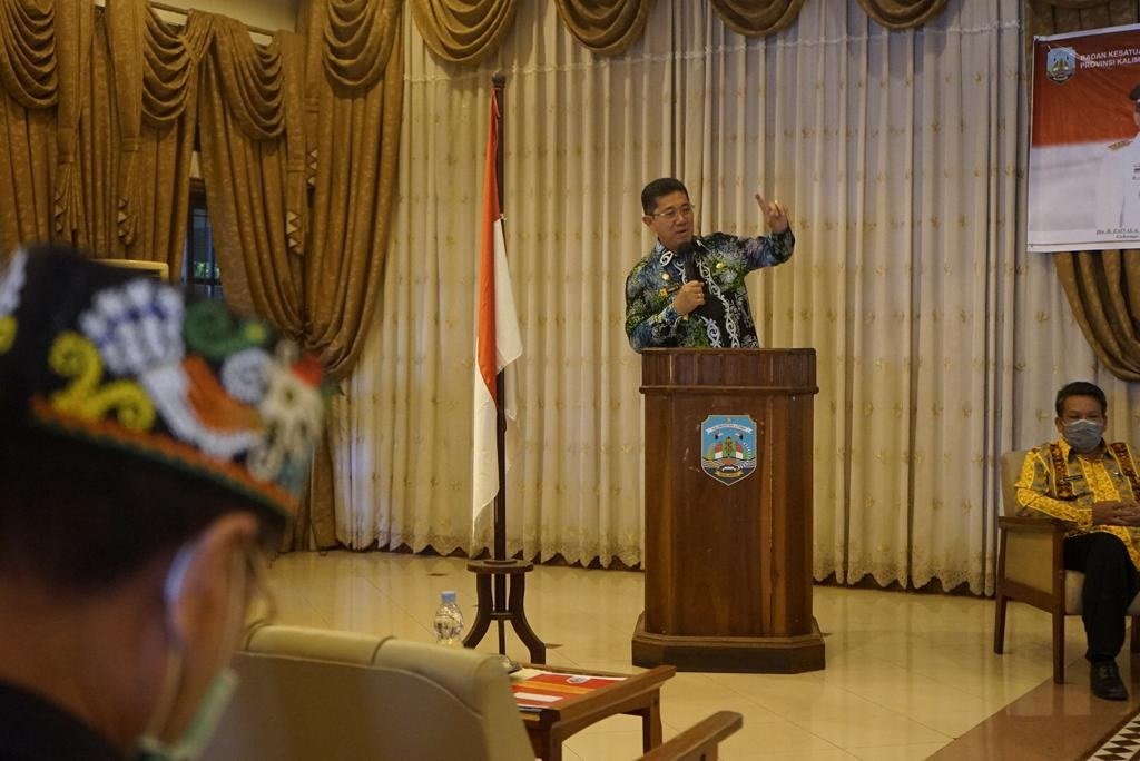 MALINAU – Wakil Gubernur Kalimantan Utara (Kaltara), Dr. Yansen TP, M.Si menyampaikan pesan kebangsaan kepada para tokoh di Kabupaten Malinau, di Hotel Mahkota, Kamis (24/6/2021). Ini sebagai upaya penguatan wawasan kebangsaan bagi masyarakat dalam merajut kemerdekaan.