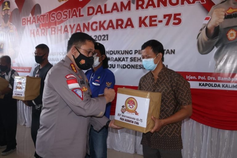 TANJUNG SELOR – Menjelang Hari Bhayangkara ke 75, Polda Kaltara bagikan puluhan paket sembako kepada masyarakat yang terdampak akibat pandemi Covid-19. Adapun masyarakat yang menerima bantuan paket sembako tersebut ialah masyarakat yang berada di Tanjung Selor.