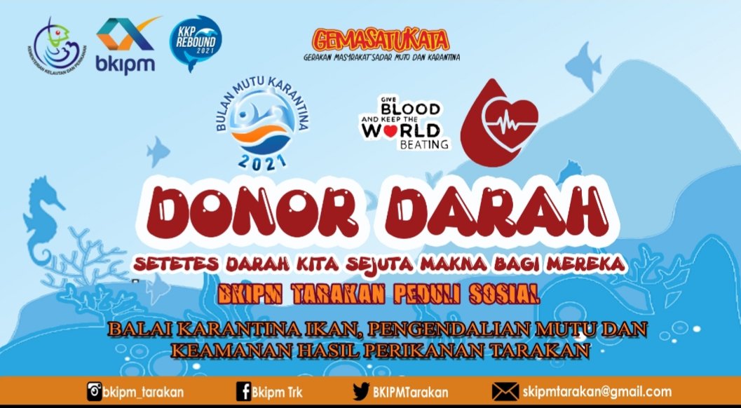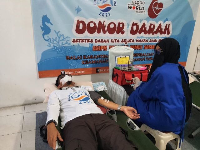 TARAKAN – Pekan Pelayanan Publik dan masih dalam rangka Bulan Mutu Karantina Balai KIPM (Karantina Ikan dan Pengendalian Mutu) Tarakan bekerja sama dengan Palang Merah Indonesia (PMI) Kota Tarakan melaksanakan kegiatan donor darah bertempat di Kantor Pelayanan Balai KIPM Tarakan, Jumat 2 Juli 2021.