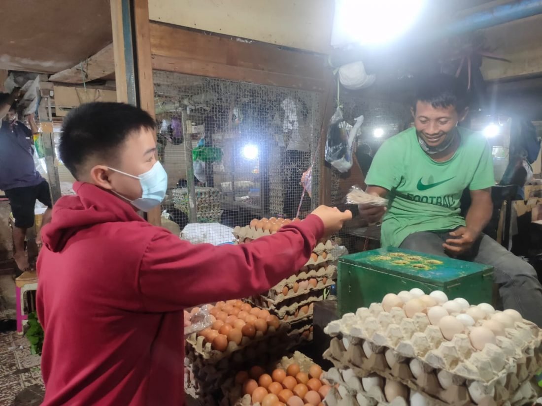 Sore itu, organisasi mahasiswa yang tergabung pada kelompok Cipayung membagikan masker kepada pedagang di Pasar Gusher dengan jumlah anggota yg ikut dalam kegiatan.