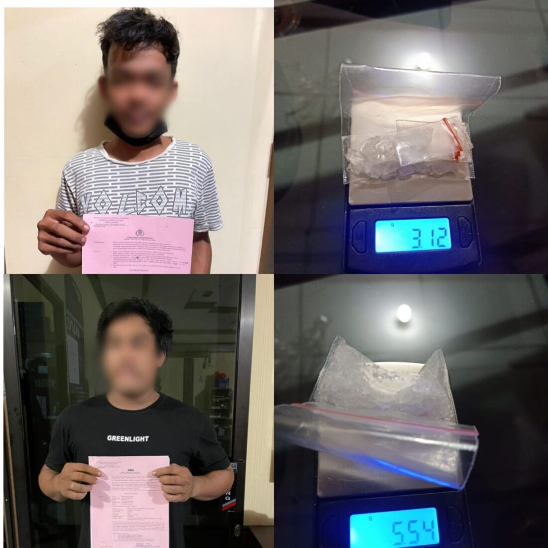 Polisi yang terus memantau pegerakan IB hingga pukul 00.30 (17/7/2021) dini hari, lalu memutuskan mendatangi rumah YA dan mendapati IB di depan rumah tersebut. Lagi-lagi, petugas tak butuh waktu lama untuk menciduk tersangka kedua sekaligus barang bukti sabu seberat 3,12 gram dari tangan IB.