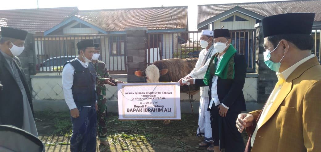 Setelah pelaksanaan Salat Eid, Bupati Tana Tidung Ibrahim Ali secara simbolis memberikan sapi kurban dari Pemerintah Kabupaten Tana Tidung kepada pengurus Masjid Agung At Taqwa.