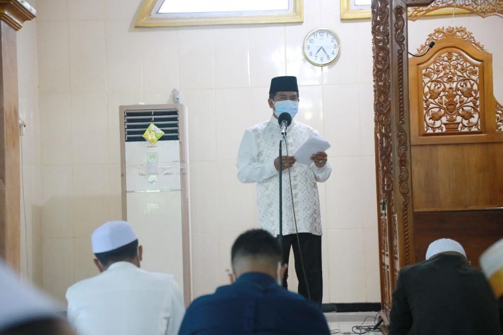 TANJUNG SELOR – Gubernur Kalimantan Utara, Drs. H. Zainal Arifin Paliwang SH, M.Hum mengikuti Salat Iduladha berjemaah di Masjid Al-Munawaroh, Jalan Serindit, Selasa (20/7/2021). Dalam sambutannya, gubernur mengimbau masyarakat agar selalu menjaga protokol kesehatan.