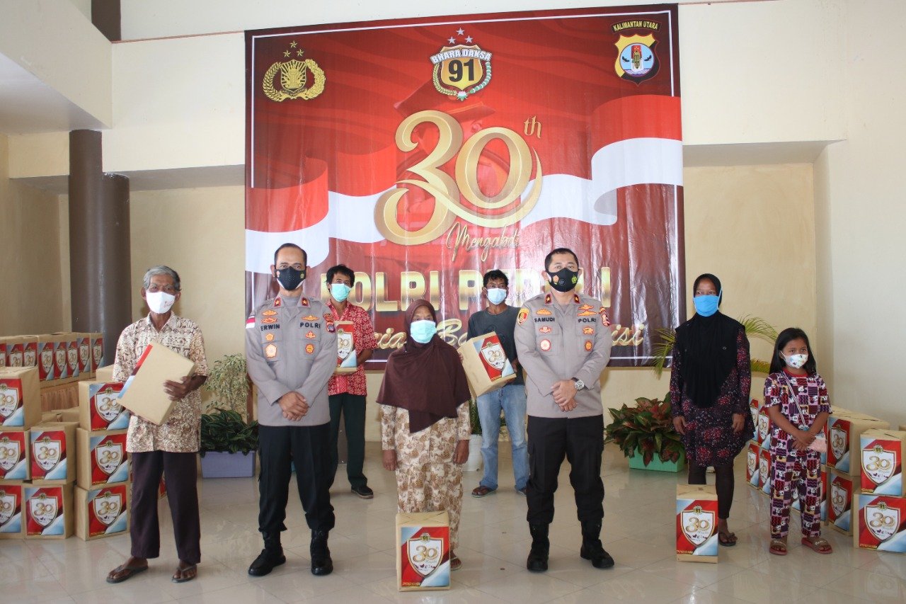 Giat baksos presisi dan gebrak Vaksinasi presisi ini dalam rangka merayakan pengabdian 30 tahun Akpol 91 Batalyon Bharadaksa di Kaltara. Adapun pemberian baksos Polda Kaltara dan jajaran sebanyak 1.000 paket sembako yang dibagikan kepada masyarakat terdampak Covid-19, Warakawuri dan Purnawirawan Polri serta keluarga besar polri.