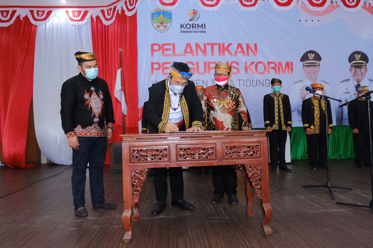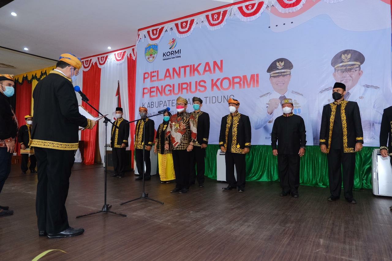 Pengukuhan dan pelantikan pengurus KORMI Tana Tidung dengan nomor Surat Keputusan (SK) 002/SK/KORMI-KU/VIII/2021 ini dilakukan langsung oleh Ketua KORMI Provinsi Kalimantan Utara (Kaltara) Dr. Yansen TP, M.Si, Selasa (10/8/2021) di Gedung Pendopo Djaparuddin, Tideng Pale.