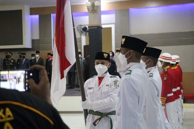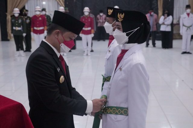 TANA TIDUNG – Bupati Tana Tidung, Ibrahim Ali kukuhkan 21 petugas Pasukan Pengibar Bendera (Paskibraka) yang akan bertugas pada upacara peringatan Hari Ulang Tahun (HUT) Republik Indonesia (RI) ke 76 tahun 2021, yang berlangsung di Gedung Pendopo Djaparuddin, Ahad malam 15 Agustus 2021.