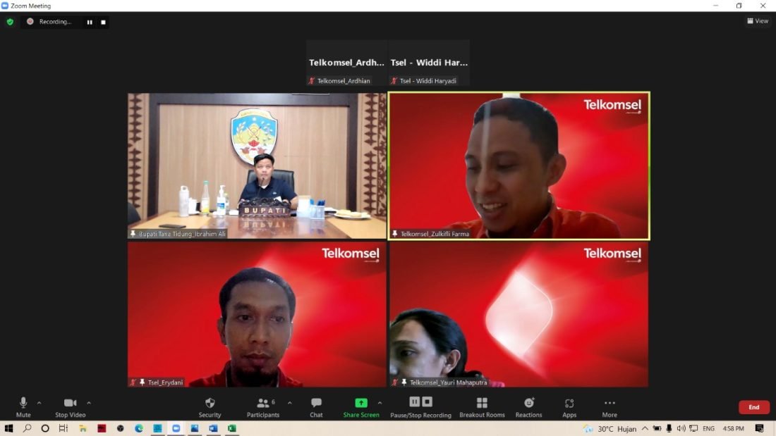 Mengenai hal itu Bupati KTT, Ibrahim Ali melakukan pertemuan lanjutan dengan pihak Telkomsel secara virtual melalui zoom miting di Ruang Rapat Bupati pada Jumat, 24 September 2021.