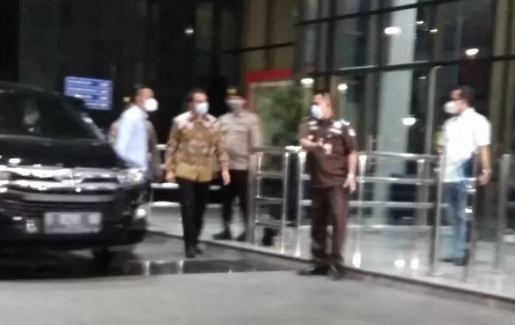 Azis tiba di Gedung KPK, Jakarta, Jumat pukul 20.00 WIB dengan mengenakan batik lengan panjang berwarna coklat.