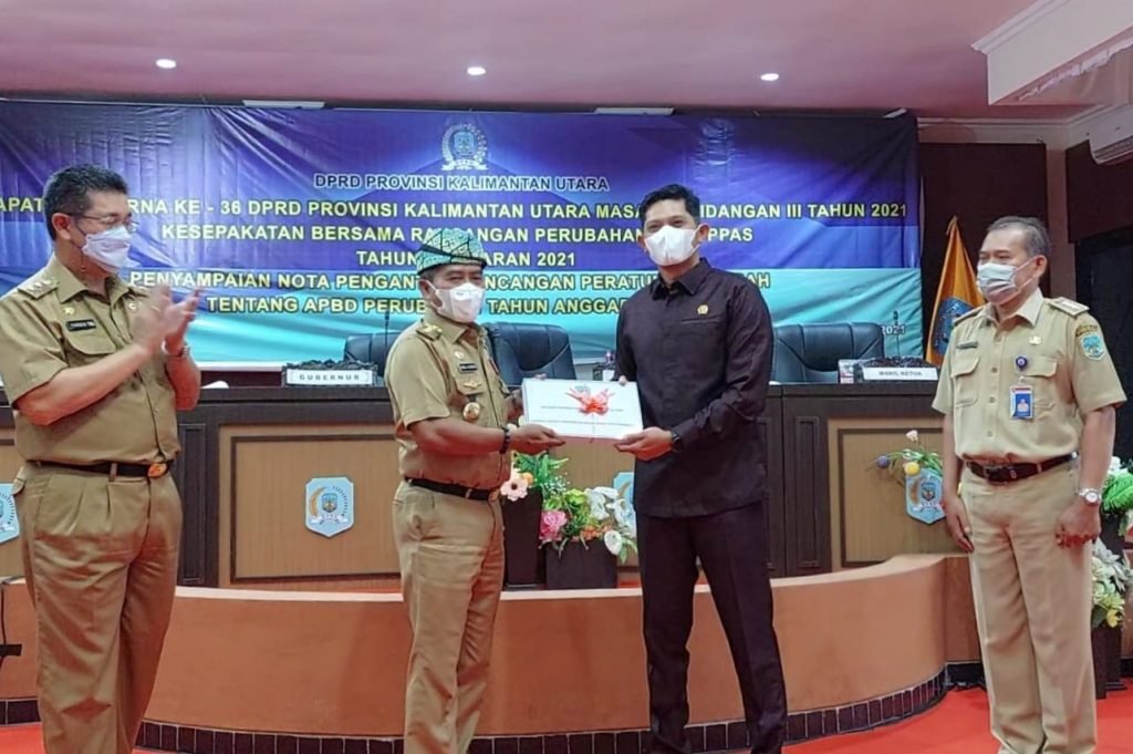 Tanjung Selor – Pemerintah dan Dewan Perwakilan Rakyat Daerah (DPRD) Provinsi Kalimantan Utara menyepakati perubahan kebijakan umum anggaran prioritas dan plafon anggaran (KUA-PPAS) anggaran pendapatan dan belanja daerah (APBD) 2021 sebesar Rp 2,6 T.