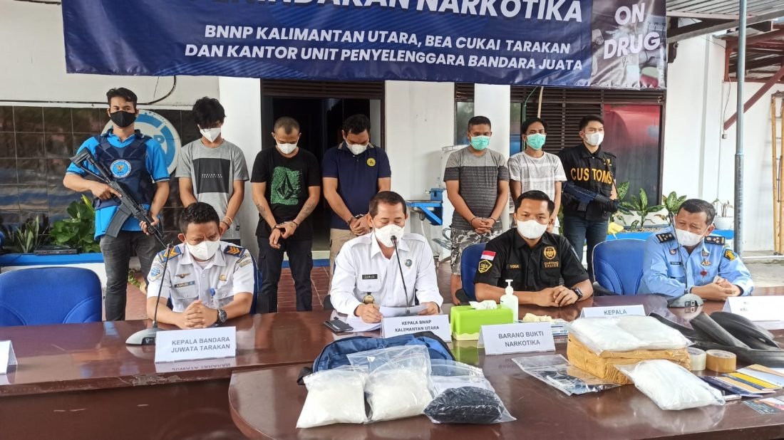 benuanta.co.id, TARAKAN – Badan Narkotika Nasional (BNN) Provinsi Kaltara merilis pengungkapan 2 kasus peredaran gelap narkotika di Tarakan pada 6 dan 9 Oktober 2021 lalu. TKP pertama di Pelabuhan Malundung Tarakan dan TKP kedua di kargo Bandara Juwata Tarakan.