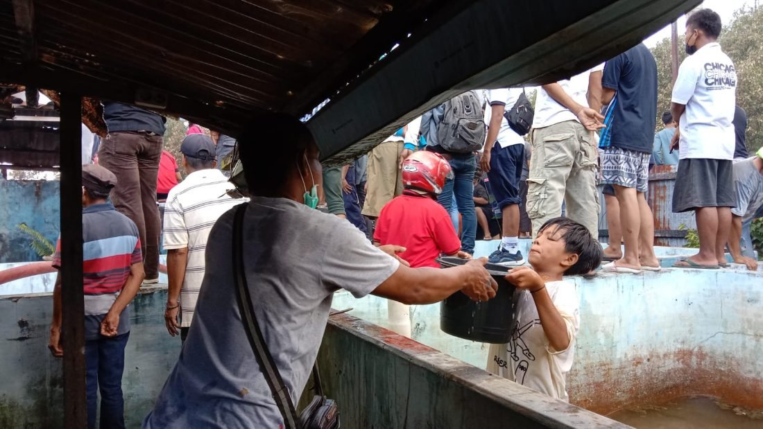 Diselingi dengan warga yang bergotong royong membantu, tampak seorang anak pun sejak dari awal kejadian ikut serta menyuplai air pemadaman dari bak pembibitan udang.