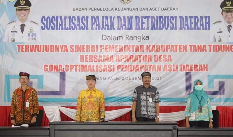 benuanta.co.id, TANA TIDUNG – Bupati Tana Tidung, Ibrahim Ali membuka kegiatan sosialisasi pajak dan retribusi daerah yang dihadiri seketaris daerah, kepala OPD, staf ahli, narasumber, kepala desa, BPD Kaltimtara Tideng Pale dan peserta sosialisasi di Gedung Pendopo Djaparuddin, Kamis 2 Desember 2021.