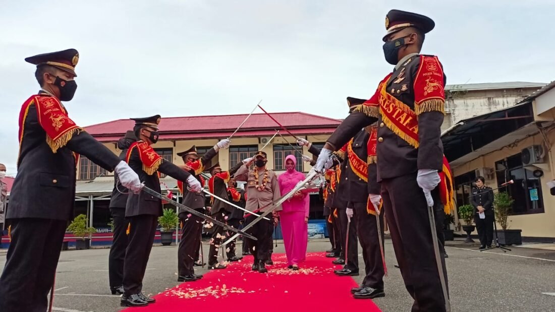 benuanta.co.id, TARAKAN – Prosesi pedang pora melepas AKBP Fillol Praja Arthadira yang digantikan AKBP Taufik Nurmandia sebagai Kapolres Tarakan. Pelepasan ini juga diwarnai suasana haru seluruh jajaran personel Polres Tarakan.