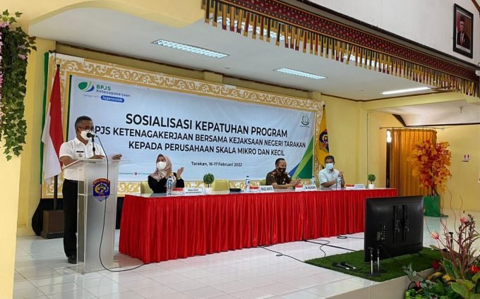 Tarakan – Badan Penyelenggara Jaminan Sosial Ketenagakerjaan Kantor Cabang Tarakan melakukan sosialisasi kepatuhan program BPJS Ketenagakerjaan bersama Kejaksaan Negeri Tarakan bagi pemberi kerja wilayah Kota Tarakan di Gedung Serbaguna Pemerintah Kota Tarakan, Rabu (16/02).