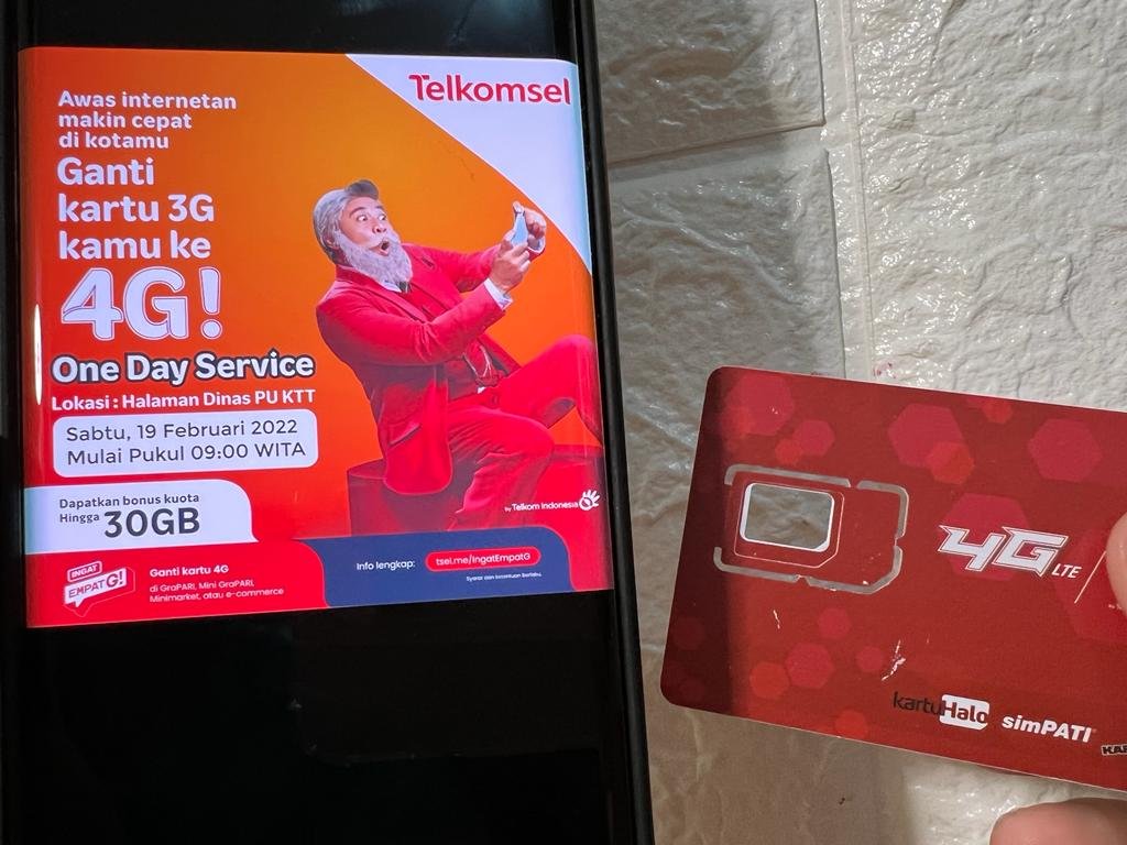 Tana Tidung – Untuk mempercepat adopsi gaya hidup digital, Telkomsel terus berkomitmen untuk mengakselerasikan konektivitas jaringan terbaik yang merata dengan mengajak pelanggan melakukan migrasi kartu USIM 4G. Untuk memberi kemudahan proses migrasi, Telkomsel menggelar one day service di Kantor Dinas Pekerjaan Umum Penataan Ruang Perumahan dan Kawasan Pemukiman Kabupaten Tana Tidung Jalan Tanah Abang RT.3 Tideng Pale pada hari Sabtu 19 Februari 2022 pukul 09.00 hingga 17.00 WITA.