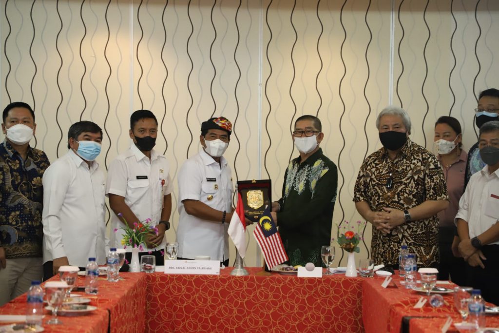 TARAKAN – Gubernur Kaltara, Drs H Zainal A Paliwang SH, M.Hum menyambut lawatan Menteri Di Jabatan Perdana Menteri Malaysia (Hal Ehwal Sabah dan Sarawak) Datuk Seri Panglima DR Johnity Maximus Bin Ongkili bersama Menteri Di Jabatan Perdana Menteri Malaysia (Ekonomi) Dato’ Sri Mustapa Bin Mohamed di Kota Tarakan, Rabu (30/3/2022).