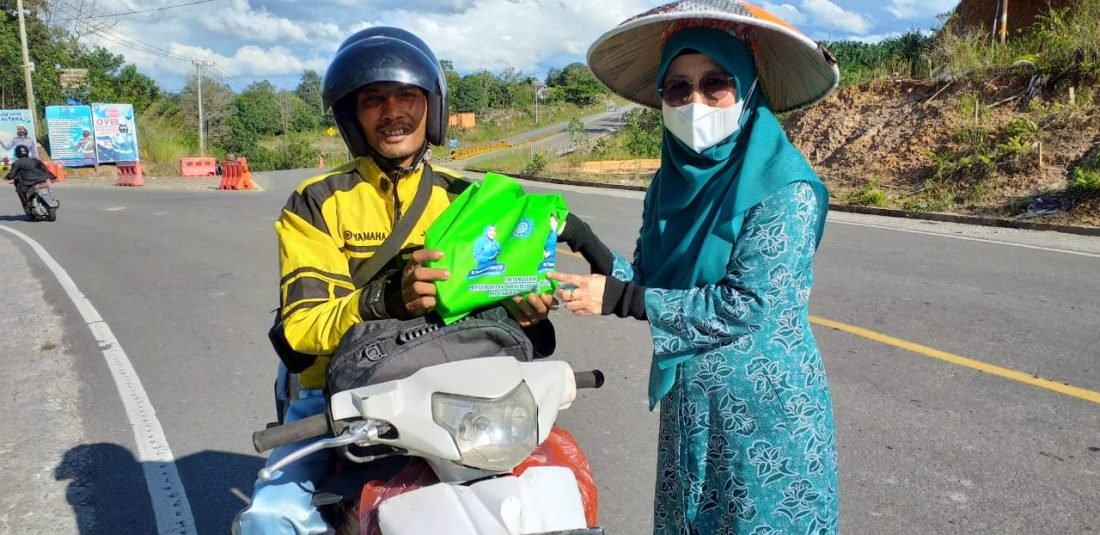 Panas terik matahari tak menyurutkan semangat ibu-ibu TP PKK yang dipimpin ibu Hj. Rachmawati Zainal bersama Ketua Dharma Wanita Persatuan Dra. Hj. Arsanah turun ke jalan hingga ke dearah KM 9 membagikan takjil jelang berbuka puasa.
