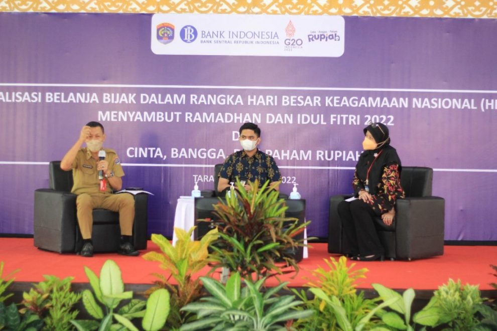 Tarakan – Dalam rangka menjaga kestabilan harga komoditas pangan dan memperkuat efektivitas kebijakan moneter menjelang momen Hari Raya Idul Fitri 1443 H, Kantor Perwakilan Bank Indonesia Provinsi Kalimantan Utara menyelenggarakan kegiatan “Sosialisasi Belanja Bijak Dalam Rangka Hari Besar Keagamaan Nasional (HBKN) Menjelang Idul Fitri 1443 H dan Cinta, Bangga dan Paham (CBP) Rupiah” pada tanggal 12 April 2022 sebanyak 2 (dua) sesi kepada perwakilan organisasi wanita dan para pemuka agama yang ada di Kota Tarakan.