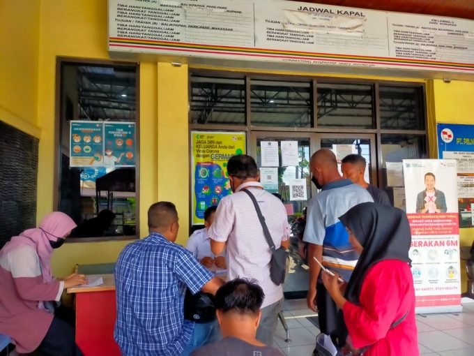 Berdasarkan pantauan benuanta.co.id, pada Senin, 25 April 2022, calon penumpang berbondong-bondong mendatangi loket pelayanan di Kantor Pelni Nunukan sejak pagi untuk membeli tiket.