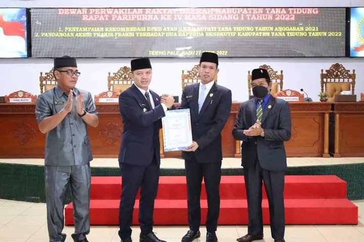 benuanta.co.id, TANA TIDUNG – Bupati Tana Tidung Ibrahim Ali menghadiri rapat paripurna ke-IV masa sidang I tahun 2022, dengan agenda penyampaian rekomendasi DPRD atas LKPJ Bupati Tana Tidung Tahun Anggaran 2022, dan pandangan akhir fraksi-fraksi terhadap dua Raperda Eksekutif Kabupaten Tana Tidung, pada Rabu, 27 April 2022.