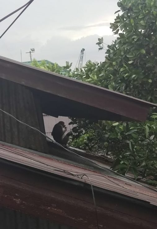 “Dia panjat pohon mangga di belakang situ, dia mungkin lapar makanya sampai makan buah mangga,” ujar Lili, warga yang menyaksikan Bekantan tersebut.