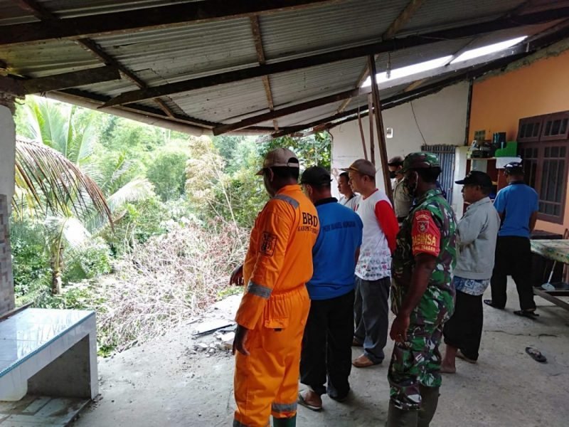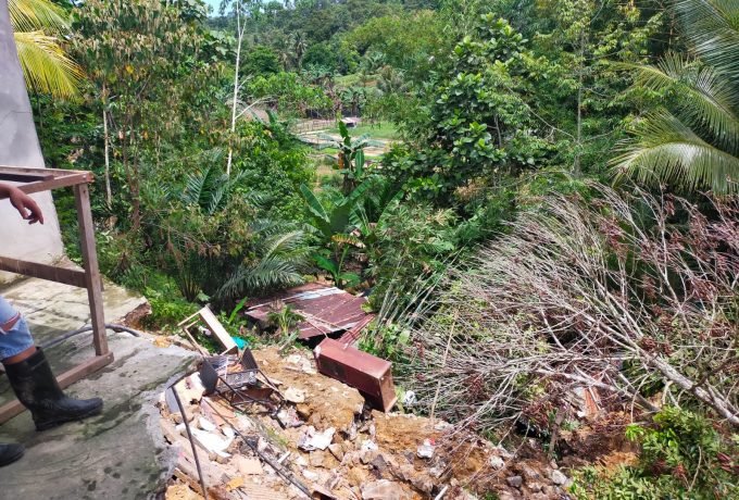 “Kerugiannya sebagian dapur runtuh, perabotan rumah tangga dan 1 ternak peliharaan saya mati karena tertimpa longsor. Kalau rumah tetangga saya pak Royen tidak ada yang rusak, hanya terkena dampak saja, tanah di belakang rumahnya terkikis cuman kita tetap waspada karena takut ada longsor susulan,” ungkapnya.